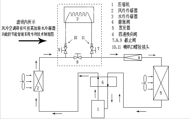 With "may need to install water condenser, energy-saving pipeline" function, air-cooled air conditioning products patent technology drawings