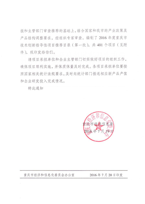 熱烈祝賀重慶綠色科技開發(fā)有限公司申報的“互聯(lián)網(wǎng)+”多色溫防霧霾、亮度遙調(diào)新一代LED路燈及遠(yuǎn)程智能控制系統(tǒng)成功列入《2016年度重慶市技術(shù)創(chuàng)新指導(dǎo)性項目》