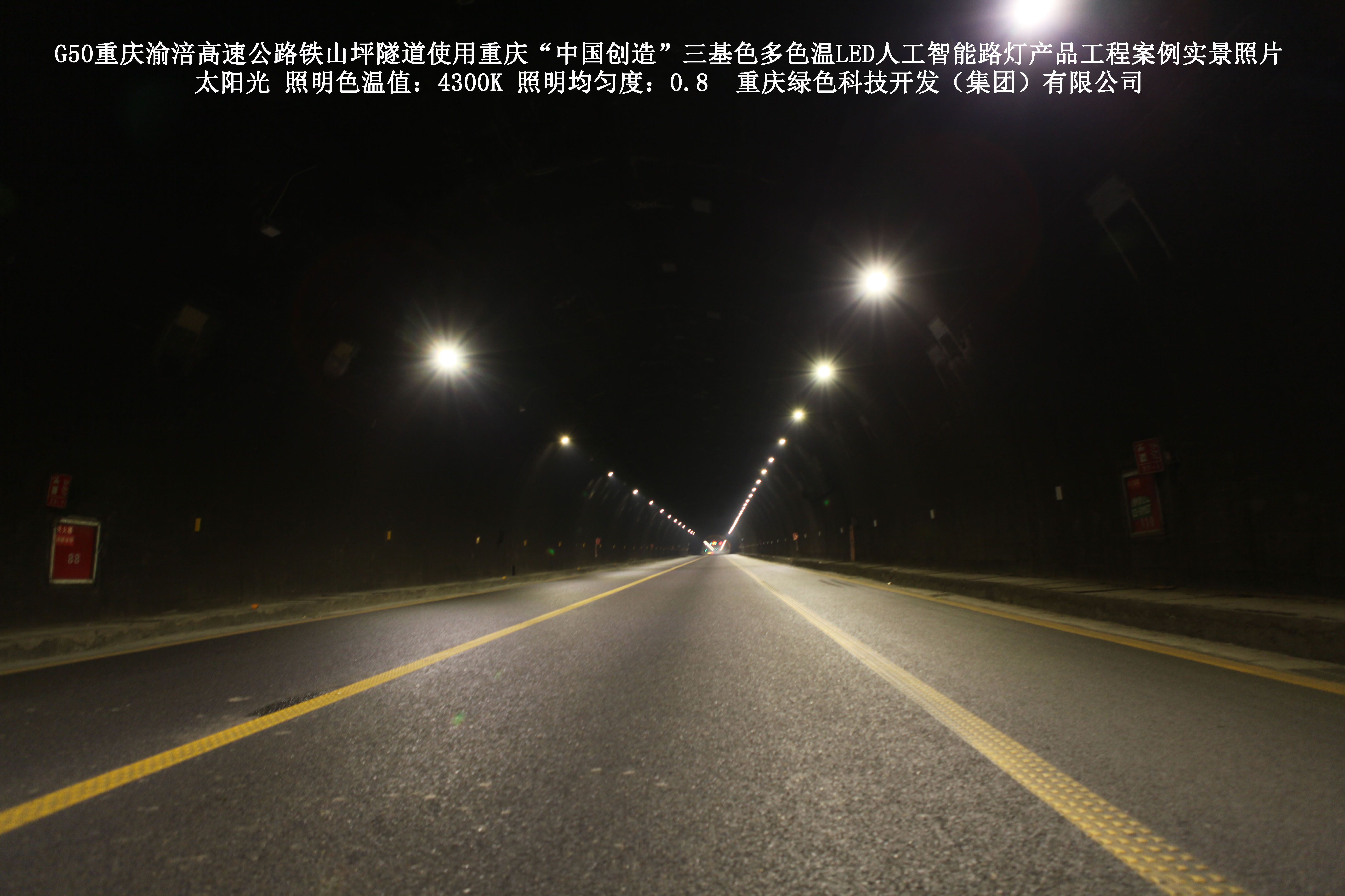 2015年9月,重慶渝涪高速公路有限公司使用了我司研發制造的重慶“中國創造”三基色多色溫LED人工智能隧道燈,對G50重慶渝涪高速公路鐵山坪隧道實施了綠色照明科技節能改造工程,工程實施后,極大地提高了隧道內照明清晰度、燈光均勻度、舒適度。通過智能終端實現單燈感知、線纜防盜報警,與原高壓鈉燈相比,節能率60%以上,有效解決了關閉控制回路或間隔關燈方式造成的照明暗區,確保車輛通行的安全。